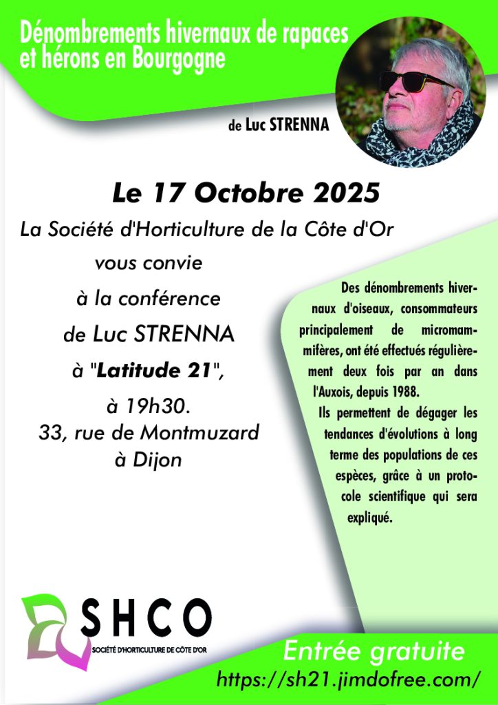 Conférence avec Luc Strenna sur les dénombrements hivernaux de rapaces et hérons en Bourgogne avec la SHCO.